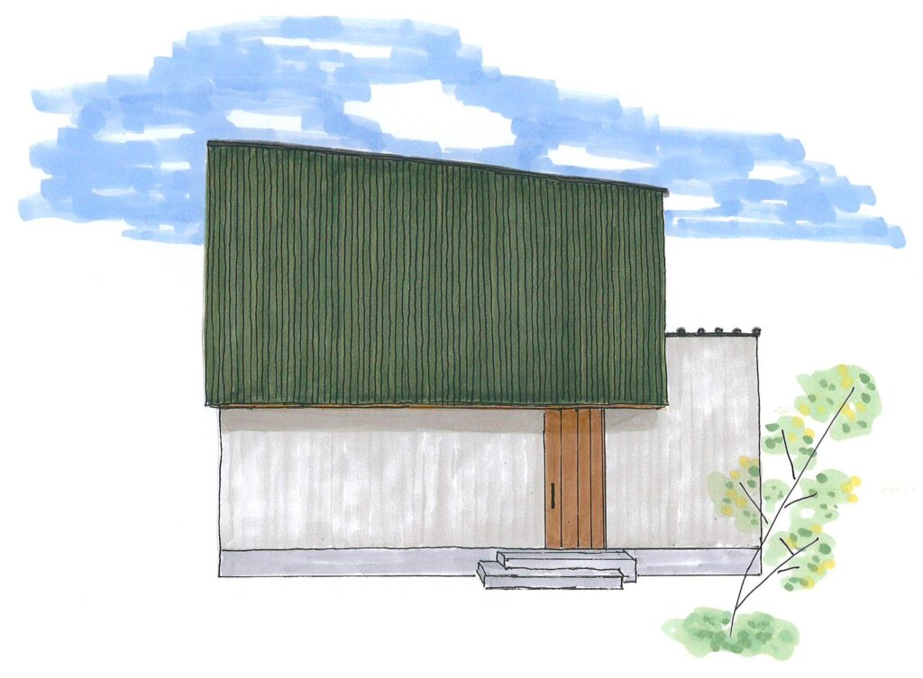『緑ガルバが映える木製階段のお家』