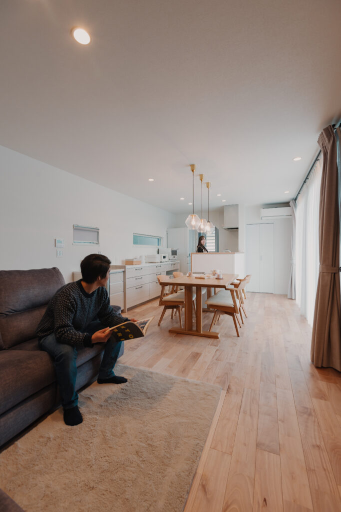 (奥さま)料理しながらでも喋れる距離で、何をしてるのか全体も見渡せるのは良かったと思います。子どもが生まれたら、和室開けっ放しで様子も見れますね。