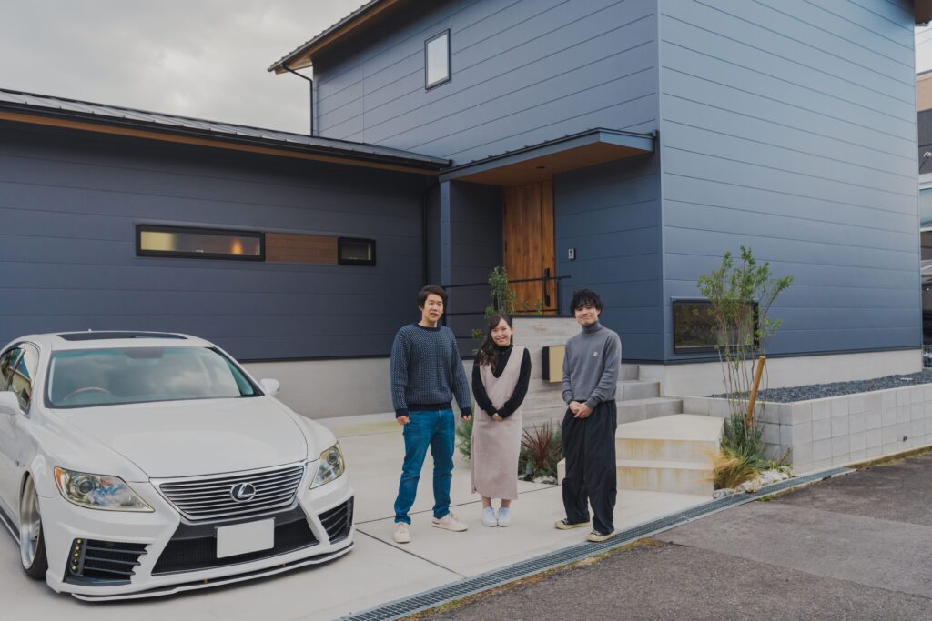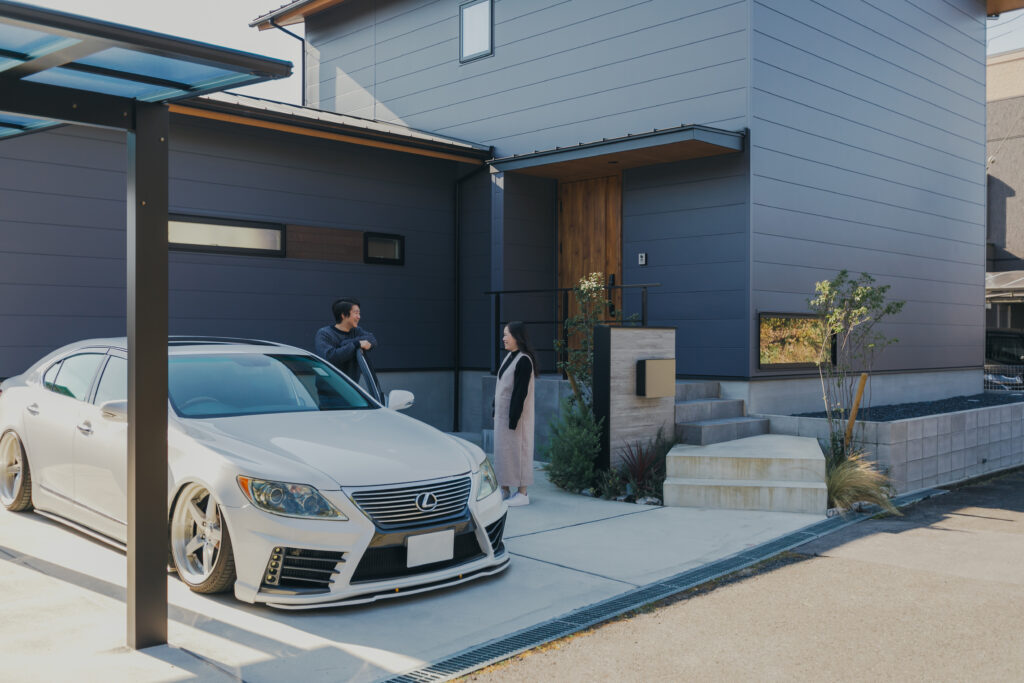 家の中から車を眺めたくてビルトインガレージをやりたかったのですが、実用性などいろいろと踏まえて何台か停められる大きな駐車場で折り合いをつけました。