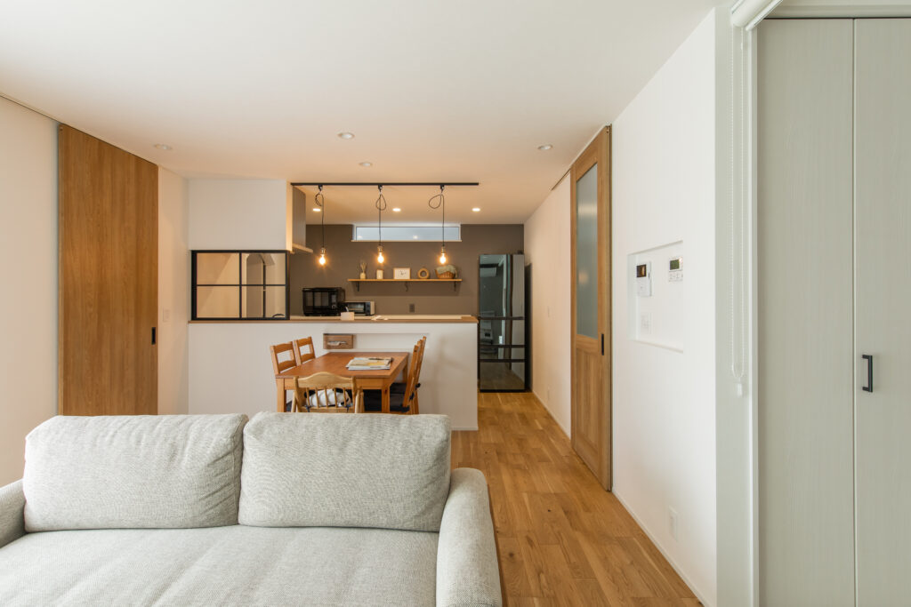 (奥様)ランドリーもですが、キッチンのアイアン窓から見るリビングが好きです。手前側からは和室で子どもがままごとして遊んでいる様子も料理をしながら見えるので、いいポイントになってます。