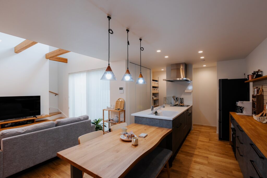 こうしておけばは、キッチンが思いのほか日の光が入らなくて、リビングが明るい分差があるなと思う時があります。窓がないからなんですけど、窓を付けると収納スペースがなくなってしまうので難しいですね。