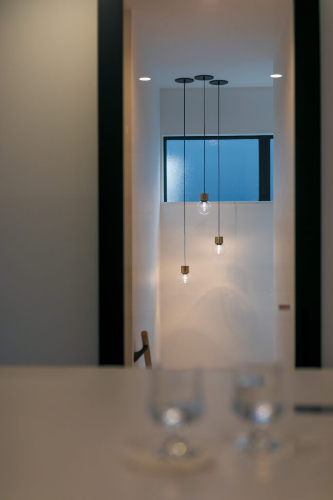 2階リビングに決まって、毎日使うので階段にきれいな照明を付けたくて。ドアをクリアにして、閉めても見えるようにこだわりました。