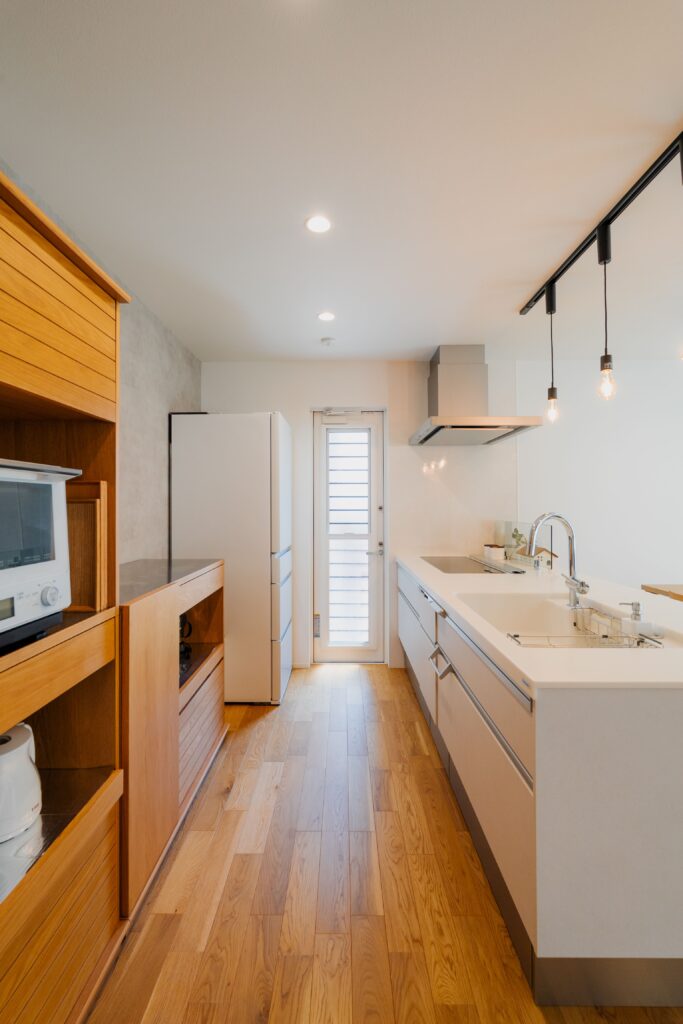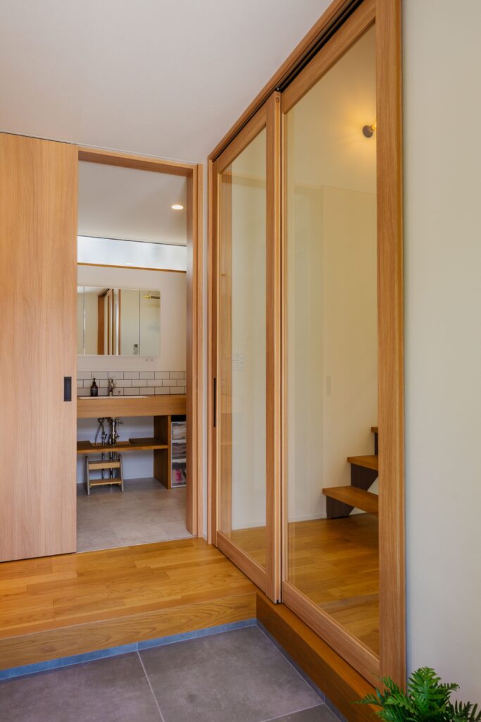 見通しの良いガラス扉や水回りへの直結動線など、住み心地の良さを計画しました。