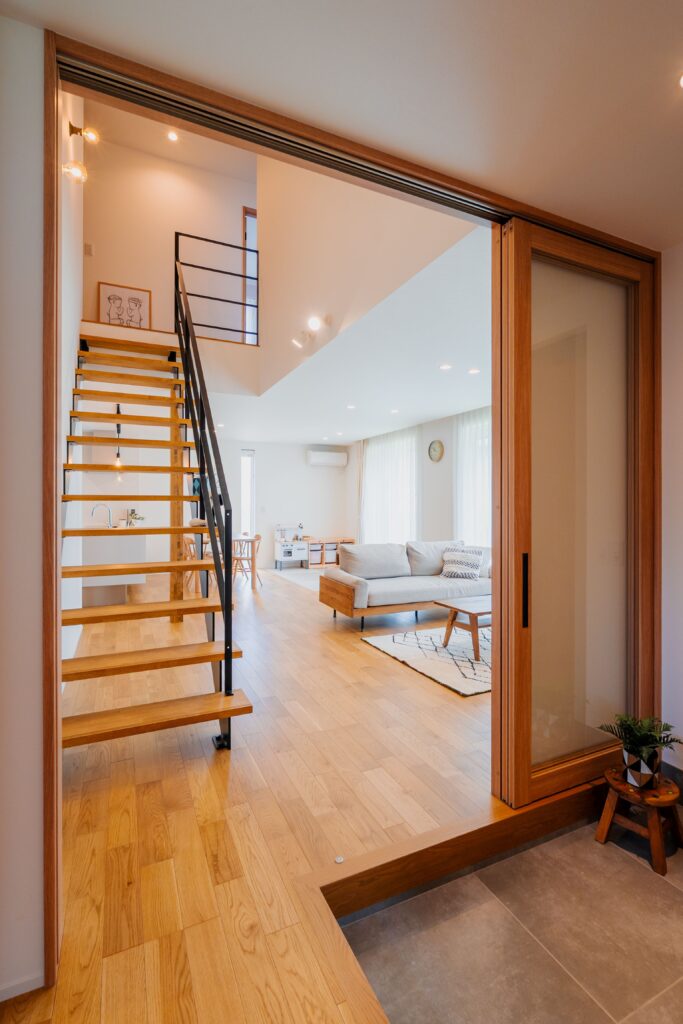 扉をオープンにすれば、なだらかにリビング階段・LDKへとつながります。