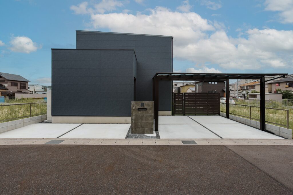 色ムラが個性になるネイビーの窯業系サイディングが、空に映えます。
