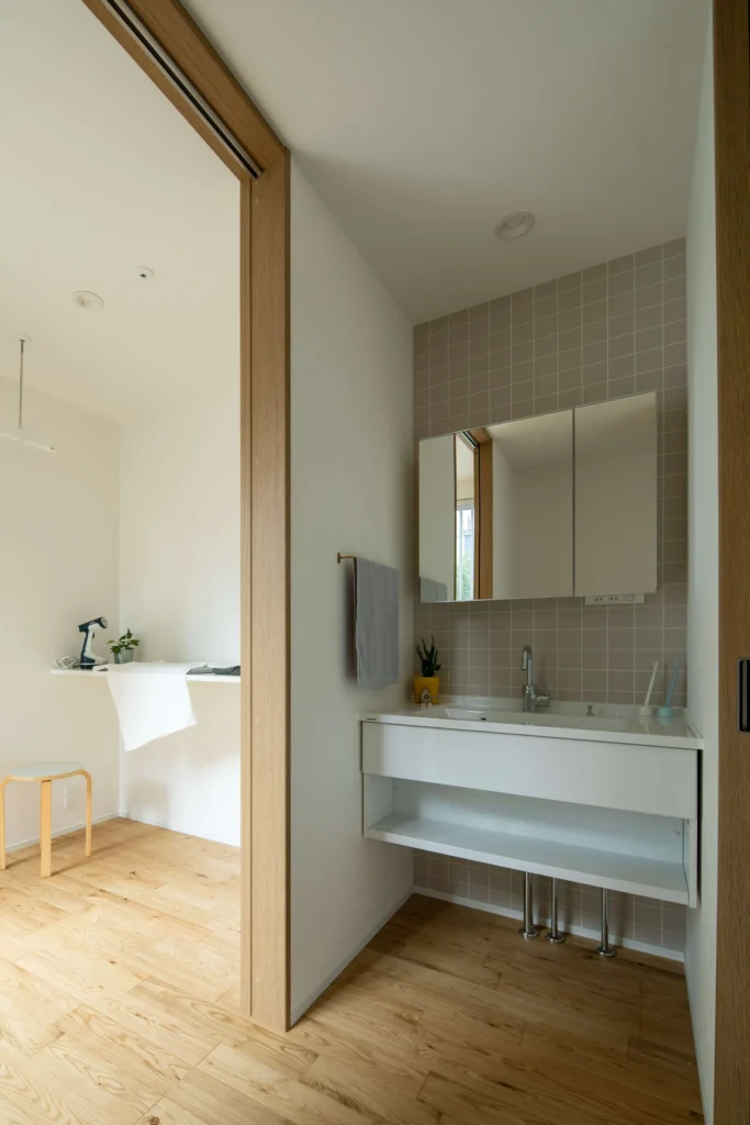 南側のサンルームには、アイロンや畳んだりができるカウンターを造作。