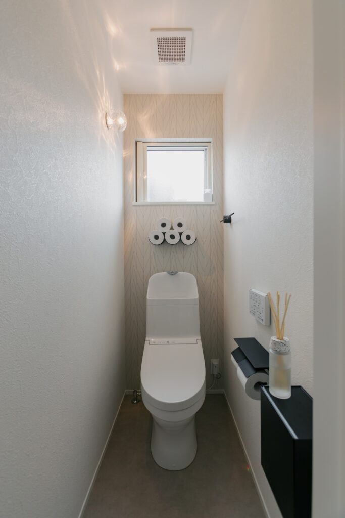 アクセントクロスと雲型ペーパーホルダーで、遊び心もプラス。