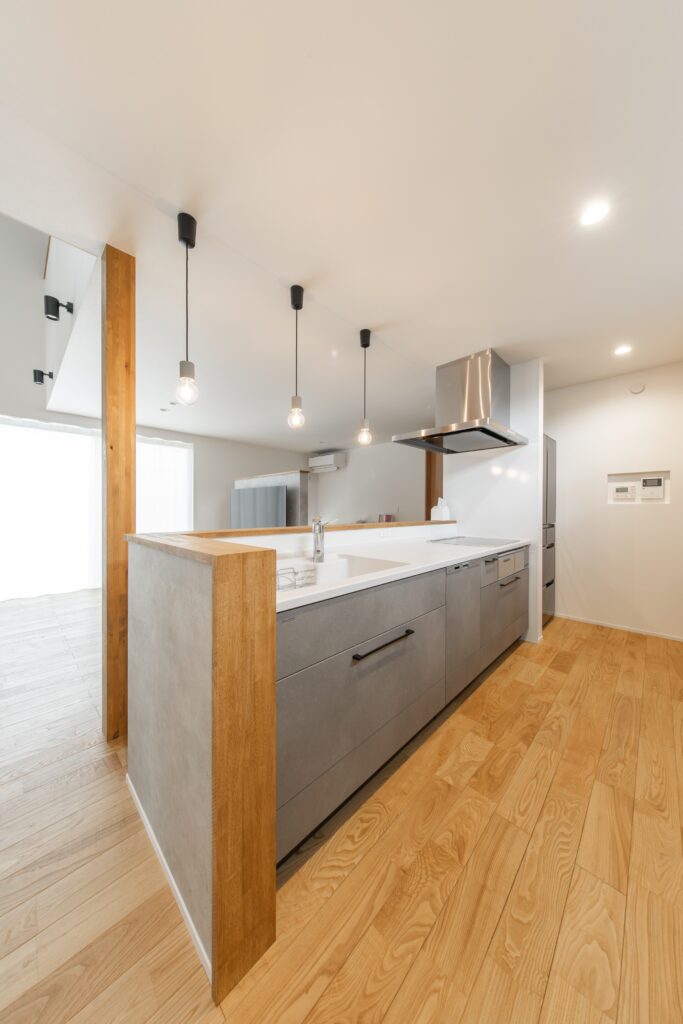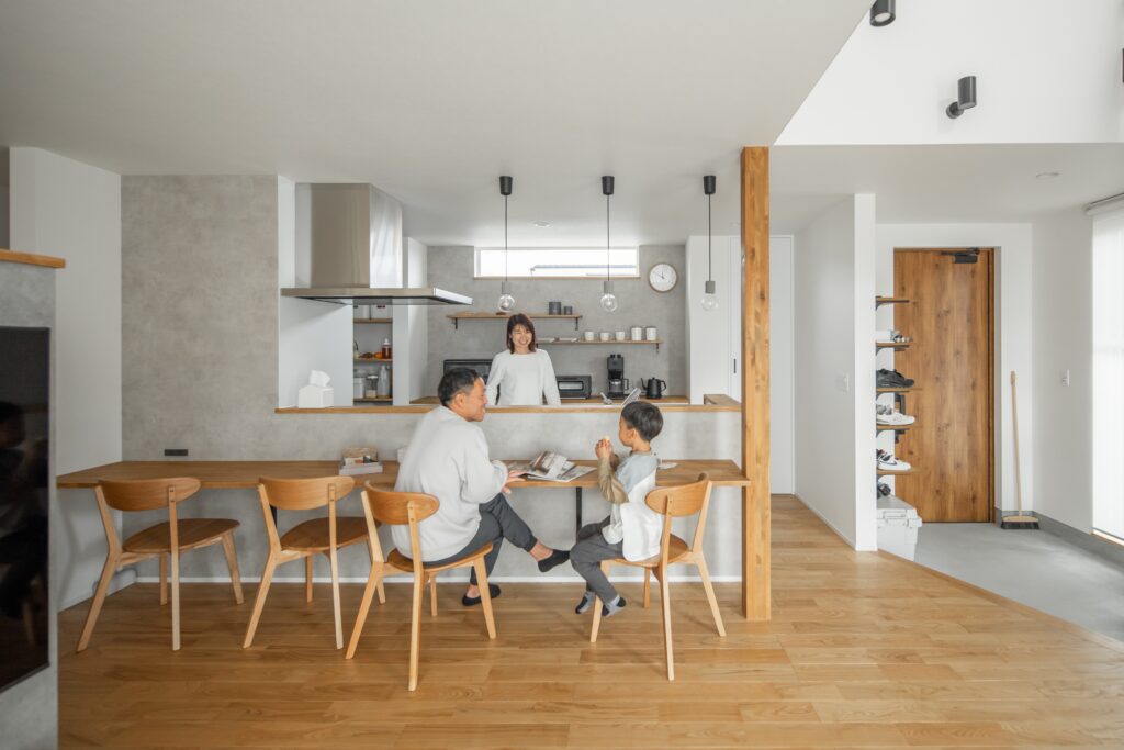 カフェのようなカウンターを造作、楽しいおしゃべりが弾むダイニングキッチン。