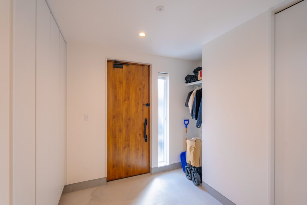 モルタル土間に窓を設け、明るさを計算した玄関です。
