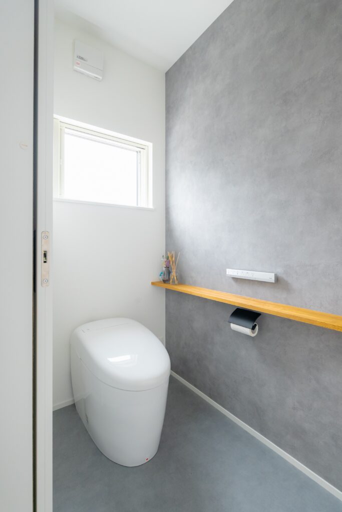 グレーのアクセントクロスや、小物を置く造作飾り棚など好きを凝縮しました。
