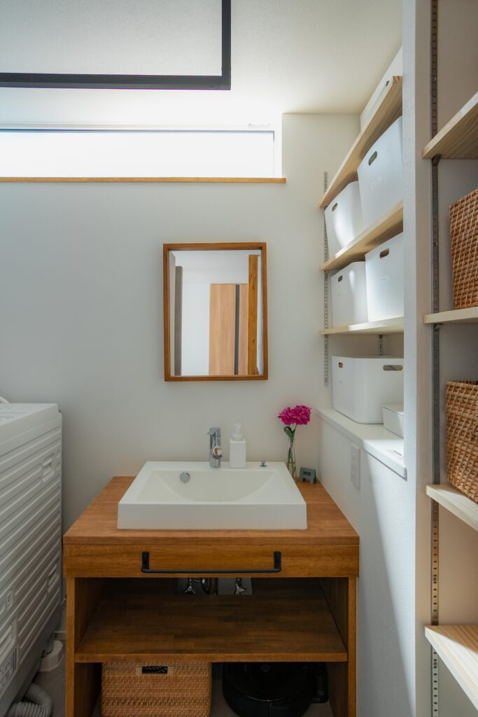 コンパクトながらも充実の収納で、機能とデザインを兼ね備えた造作洗面カウンター。