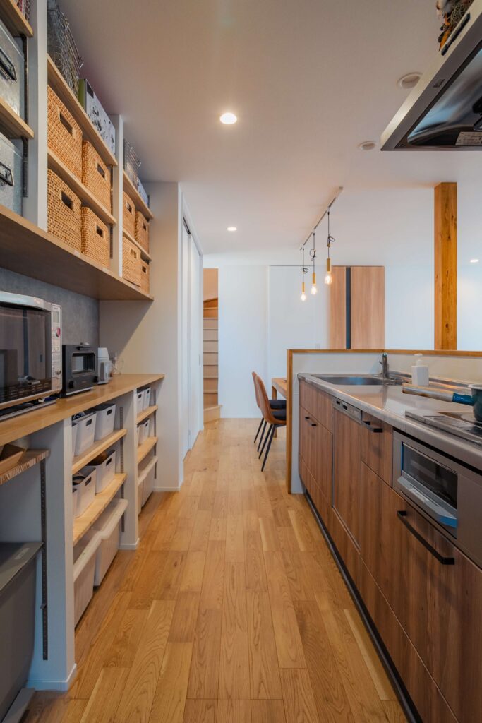 収納力と使い勝手の良い、カップボードカウンターを造作しました。