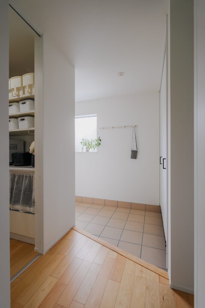 パントリーへと続く動線で、買い物の荷物もそのまま収納できます。