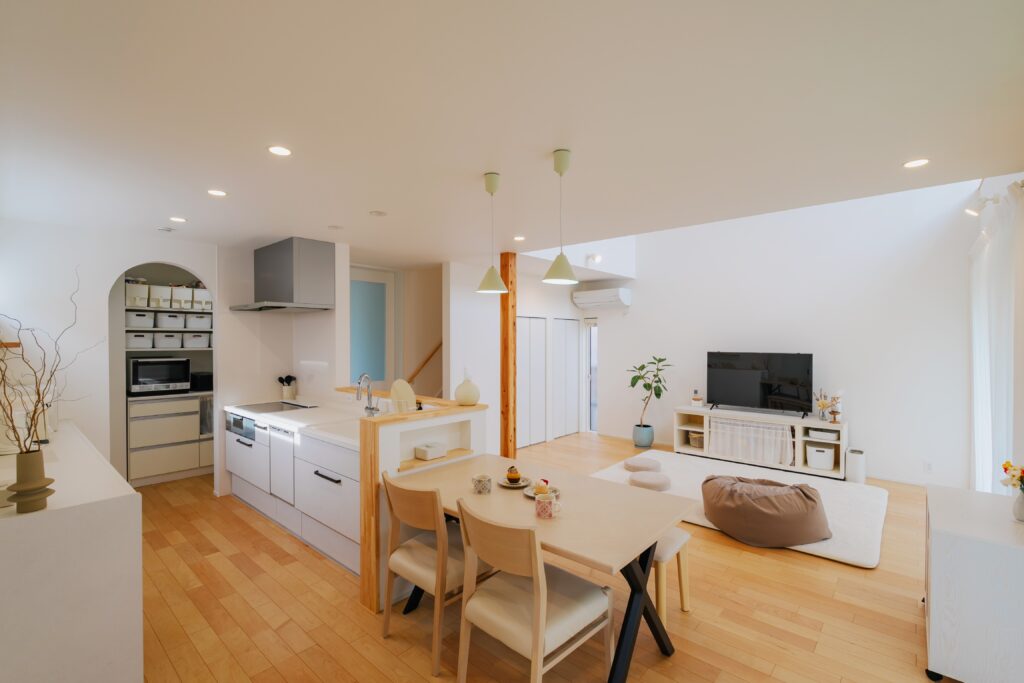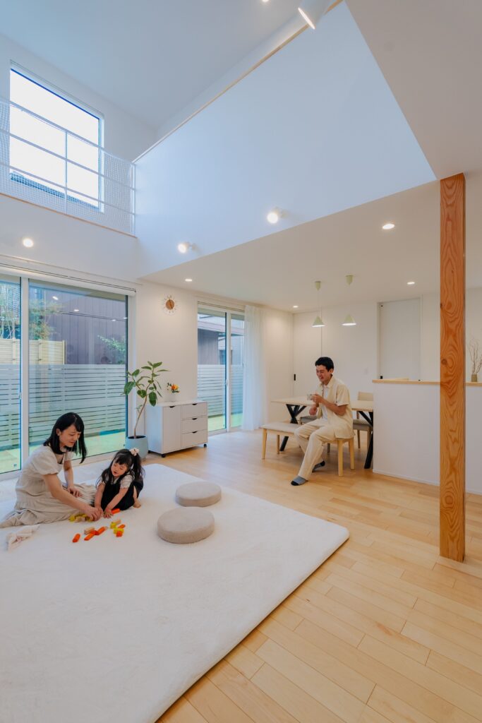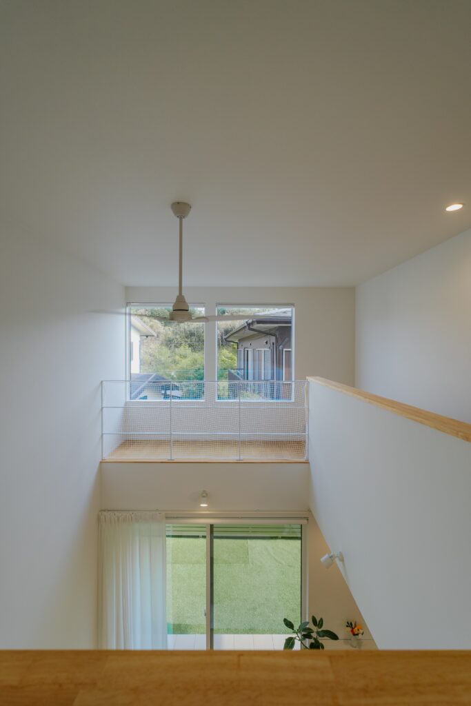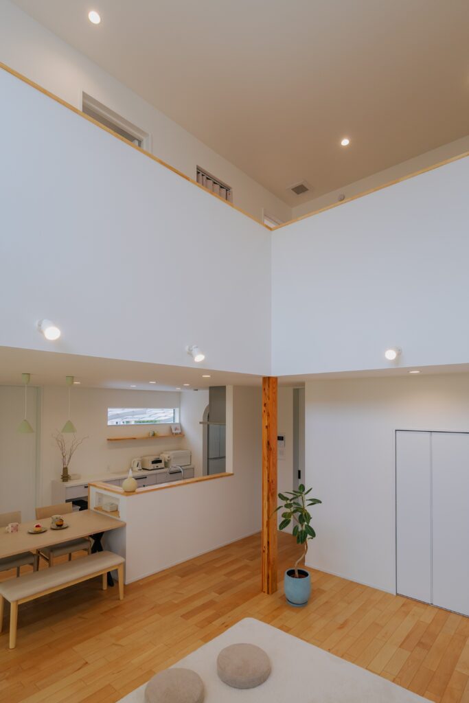 白を基調とした清い空間に、吹き抜けの開放感がバランスよく調和しています。