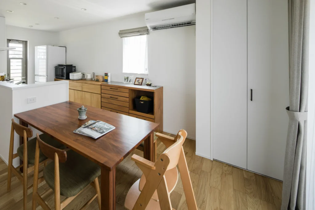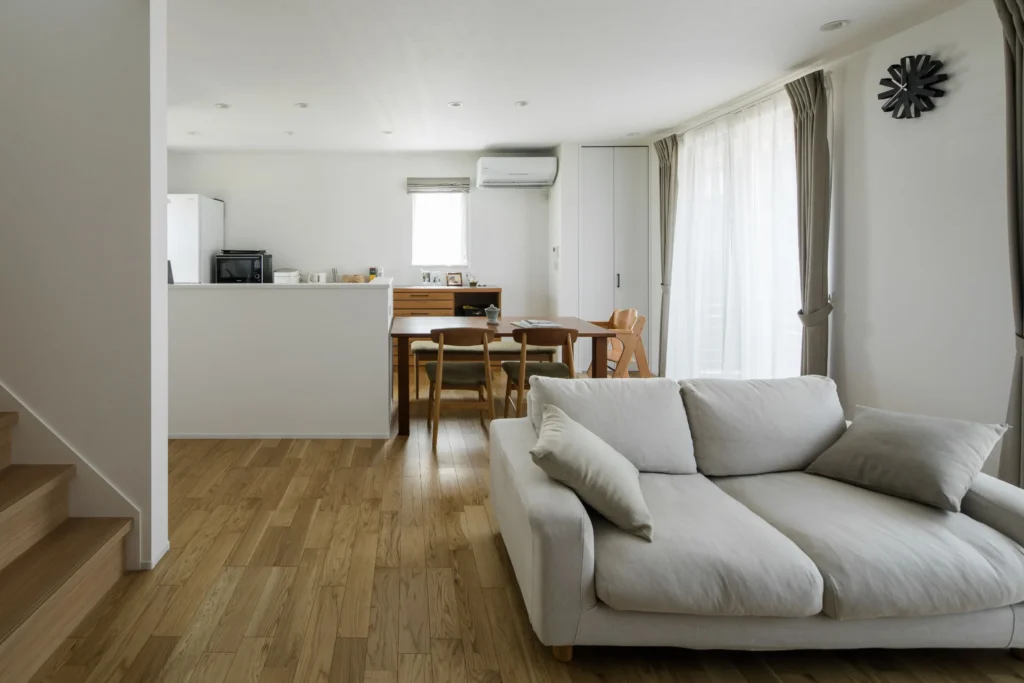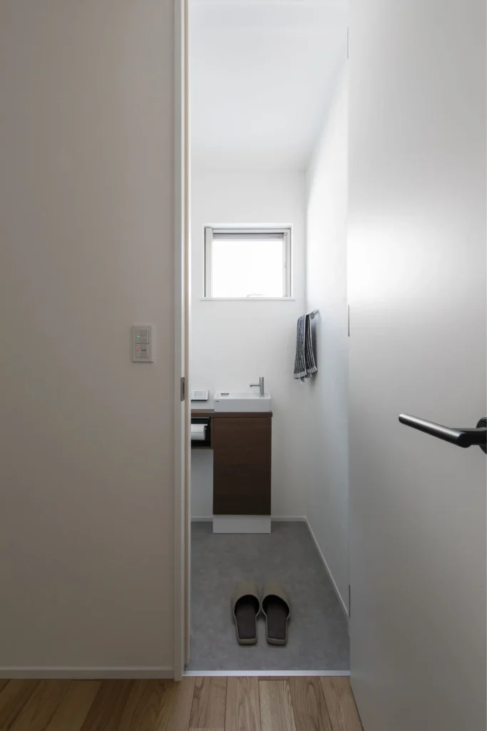 オークと相性の良いグレーを合わせた、落ち着きのある空間です。