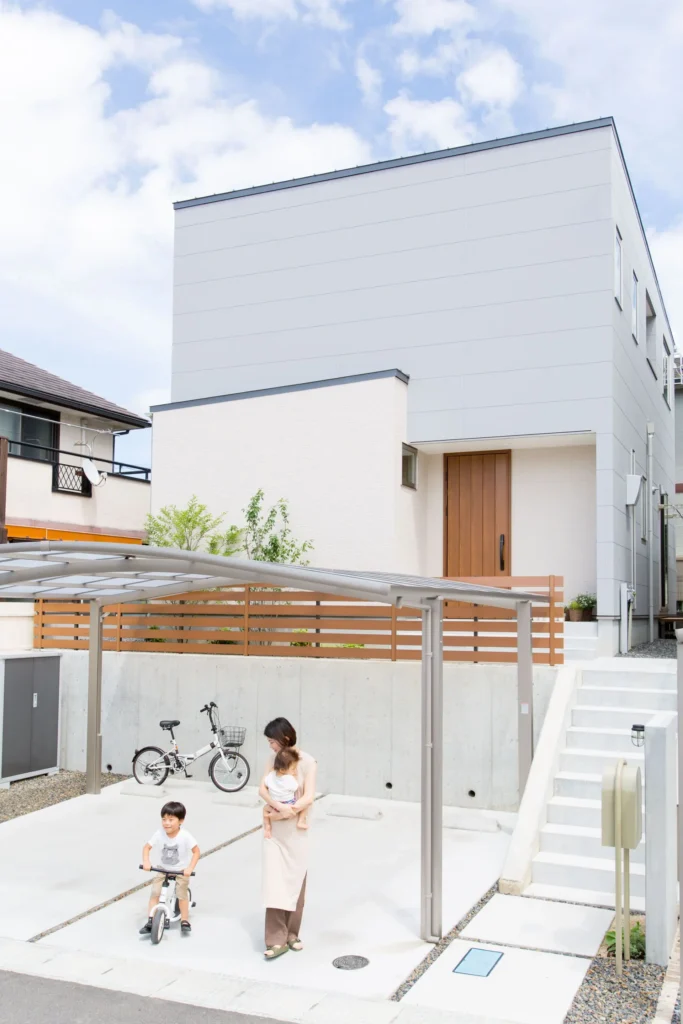 天気を気にせず洗濯物を干せる屋根付きのスペース。