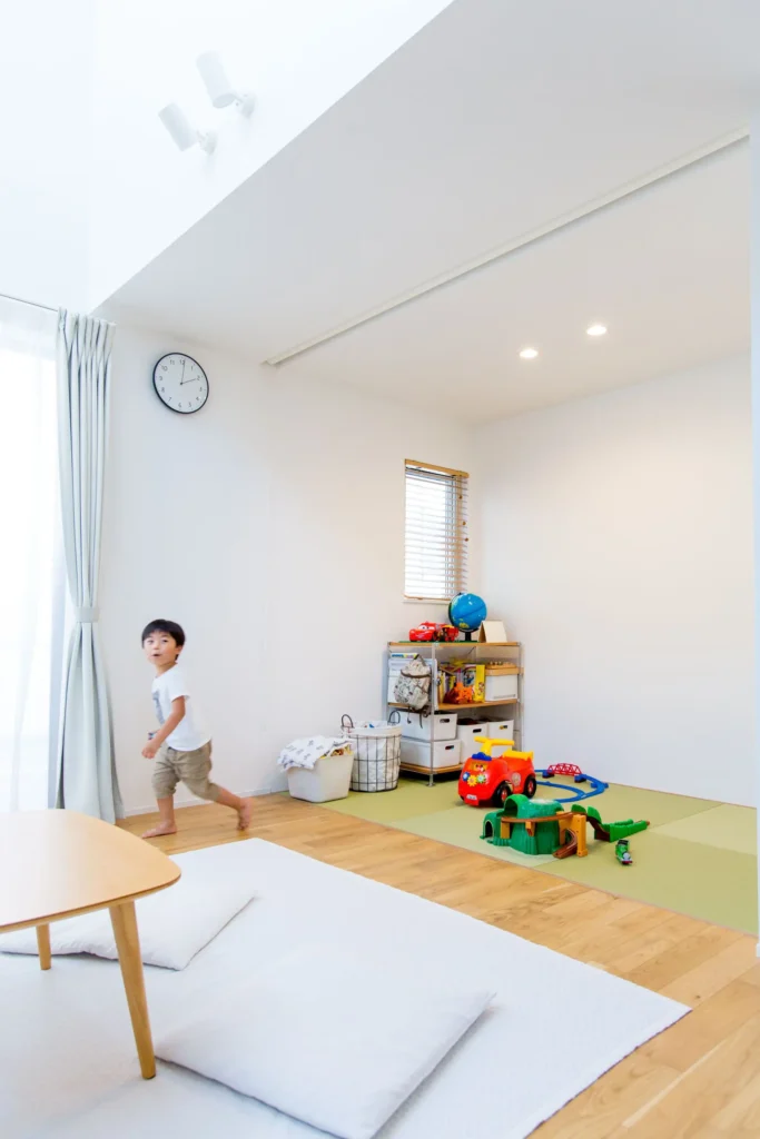 リビングと和室はロールスクリーンで仕切り、用途に合わせて使います。