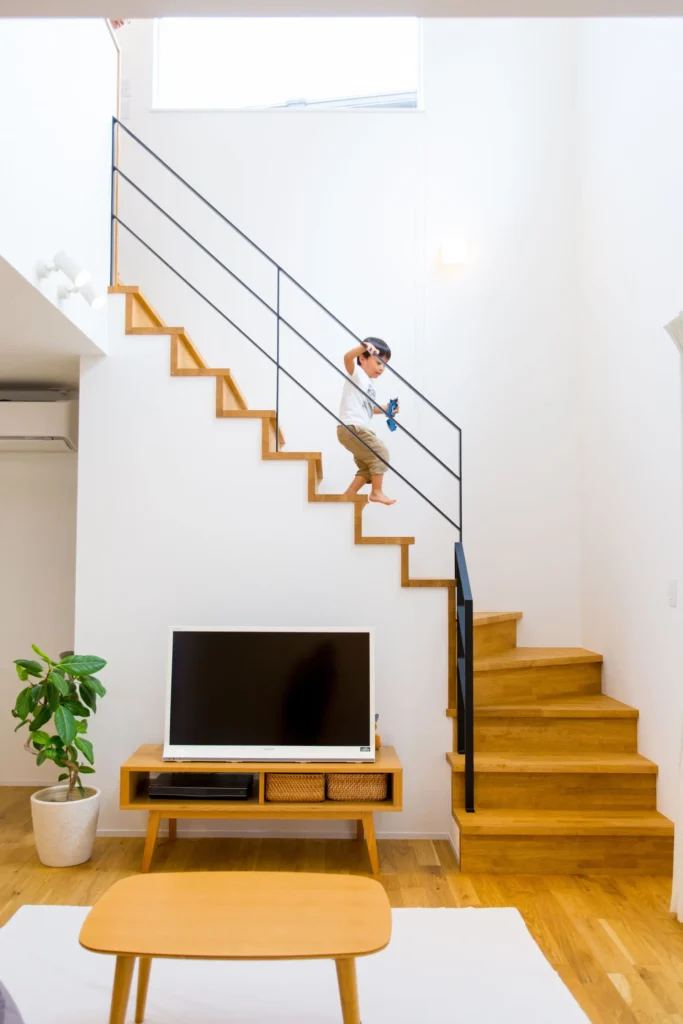 アイアン手摺りがアクセントになった吹き抜け空間。