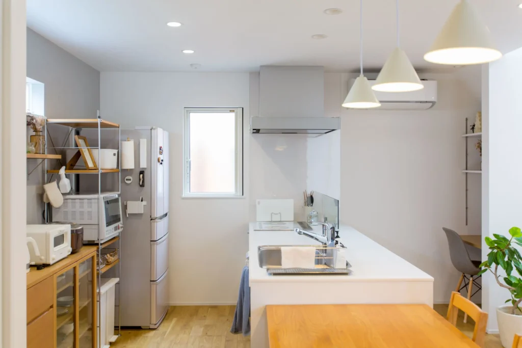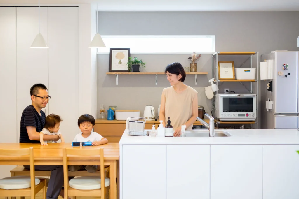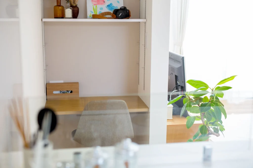 階段下スペースに設けたスタディコーナーには、キッチンからの視線が届きます。