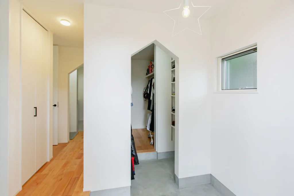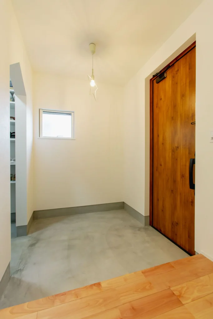 モルタル×三角垂れ壁×星のランプで、大人かわいい玄関土間が完成。