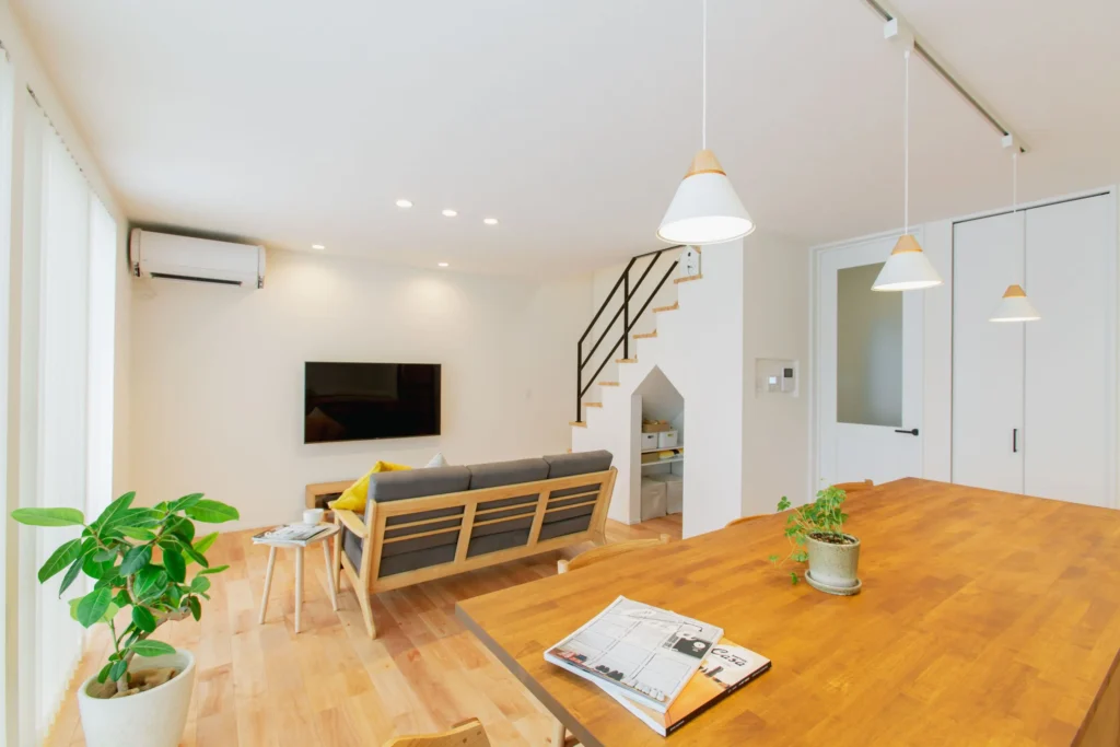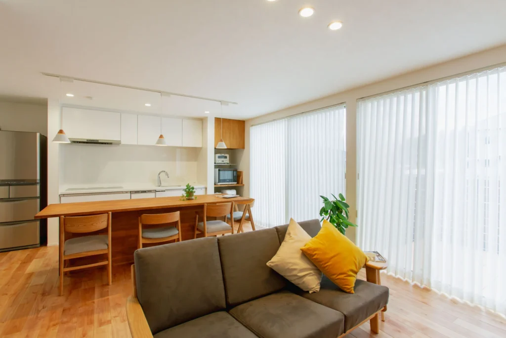 足ざわりの良いカバ桜無垢床のぬくもりに包まれるリビング。